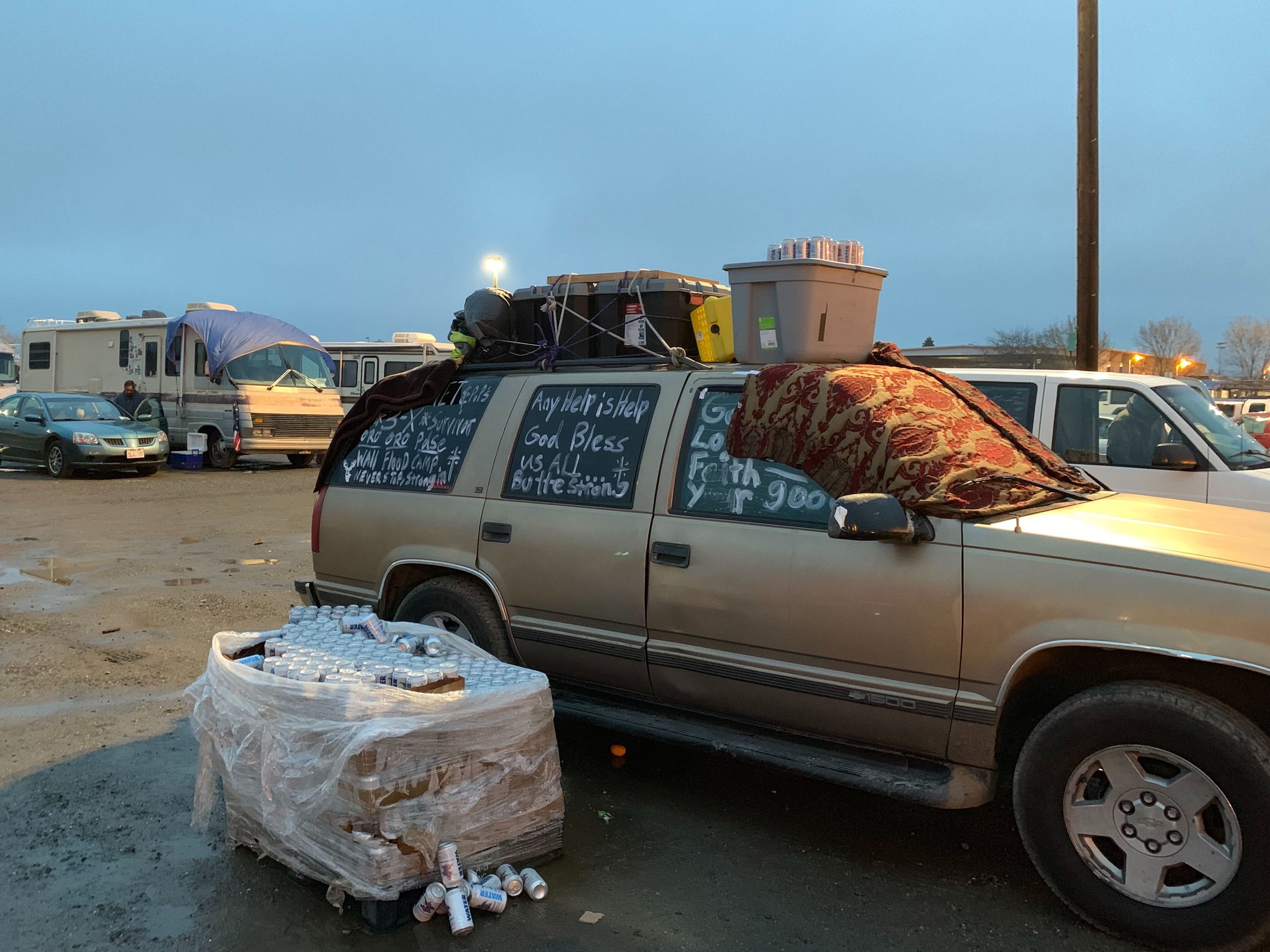 A Message Written In White Spray Paint On A Car Window Says Any Help Is Help The Car Sits In The Parking Lot Of A Shelter In Chico Where More Than Two